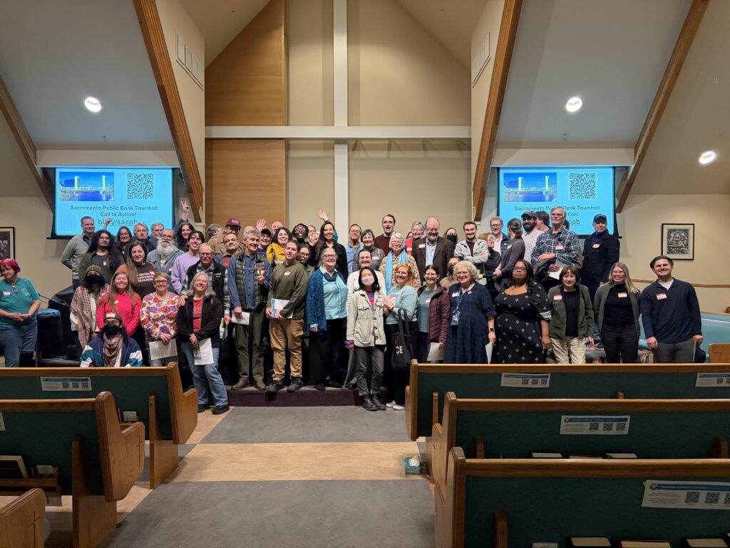 A standing-room-only crowd at the Sacramento Public Bank Town Hall. Momentum is building across California!